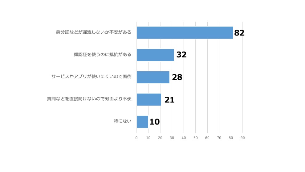 積極的利用は見込まれるものの、利用者にとって不安点として最も多かったのが「身分証などが漏洩しないか不安がある」で利用者の大半(82%)が回答しました。