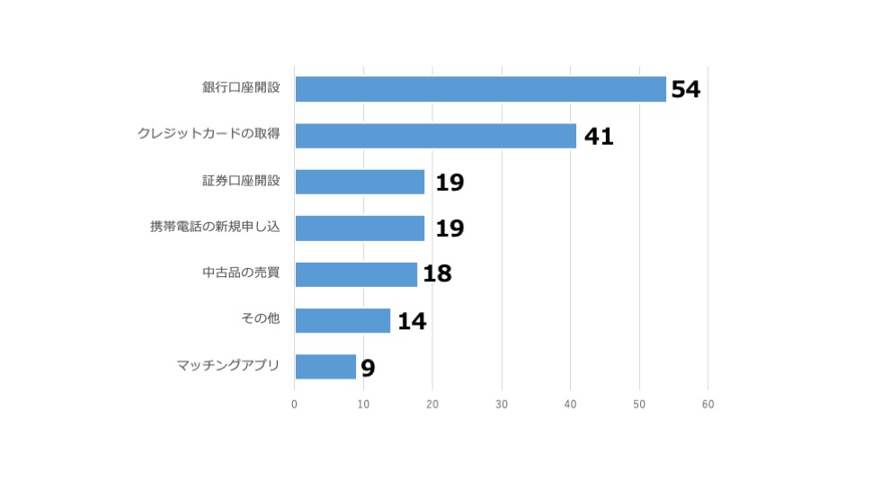 早くからオンライン本人確認〜サービス開始までオンラインで完結できるサービスを提供してきた銀行の口座開設やクレジットカードの取得が多くを占めました。