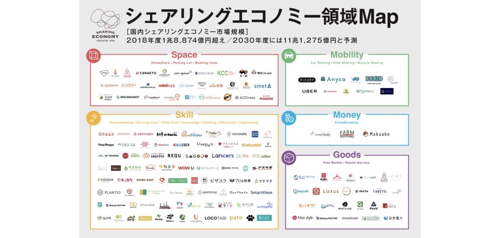 画像引用元:最新のシェアリングエコノミー 領域mapを公開しました! (2020年3月) | 一般社団法人シェアリングエコノミー協会