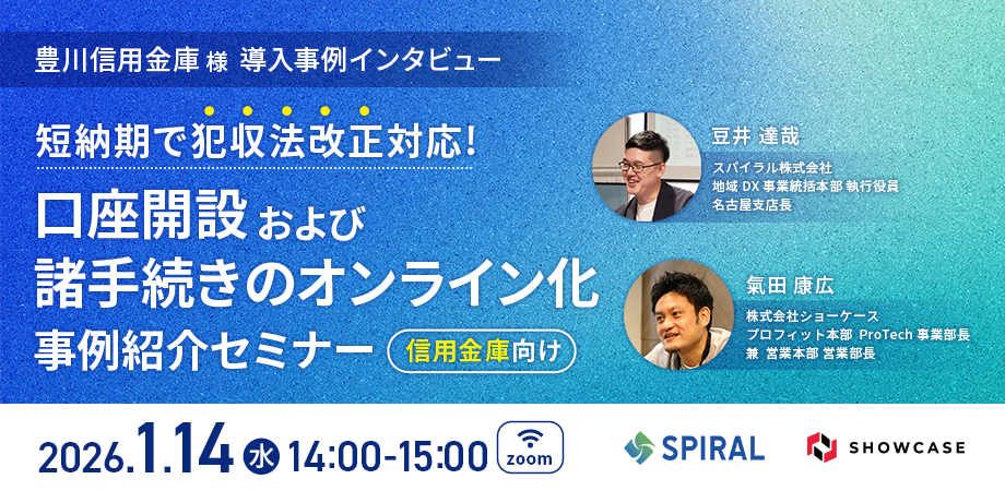 - ・信用金庫様での「SPIRAL®」導入事例のご紹介(各種ローン申込・継続的顧客管理のオンライン化)